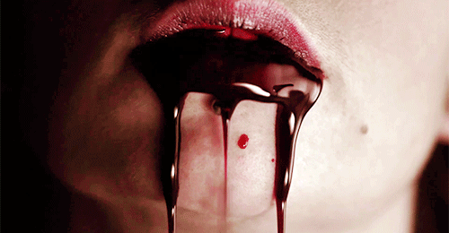 Seine Hände sind mit ihrem Blut bedeckt.